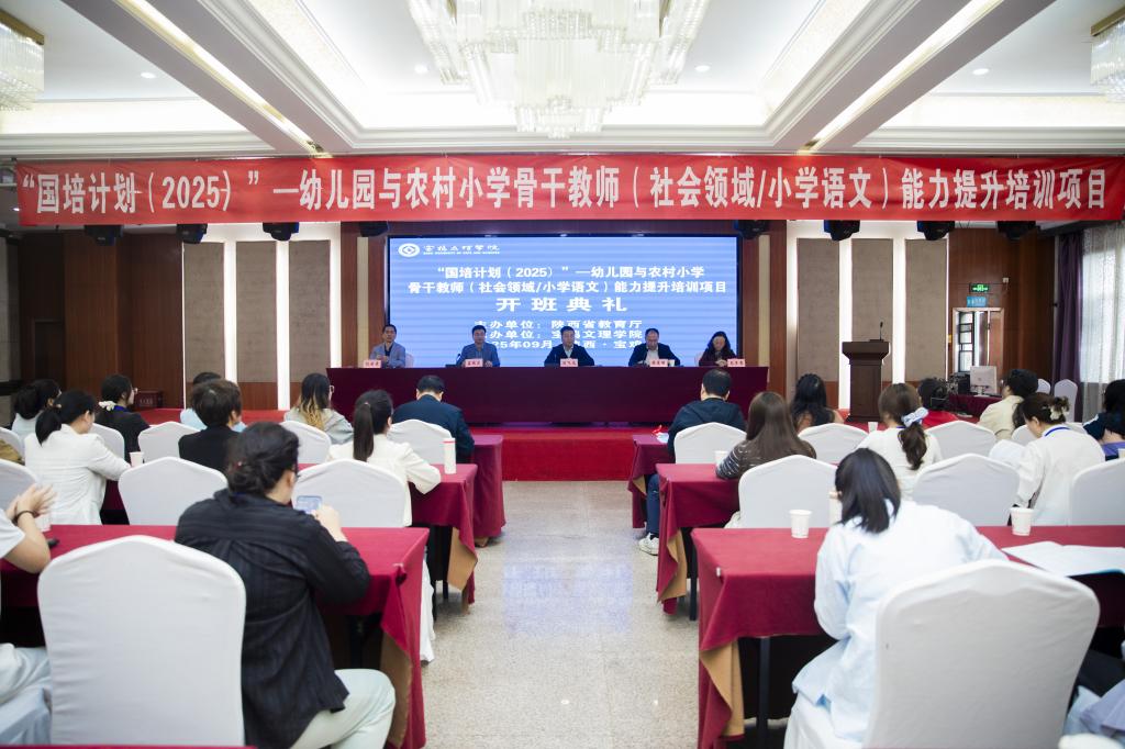 9月19日上午,由陕西省教育厅主办、我校承办的“国培计划(2025)”——农村幼儿园骨干教师领域教学能力提升(社会领域)、农村小学骨干教师能力提升(小学语文)培训项目开班典礼在宝鸡市万利酒店举行。副校长冯飞龙出席开班典礼,开班典礼由太阳成集团tyc138院长韩星明主持。